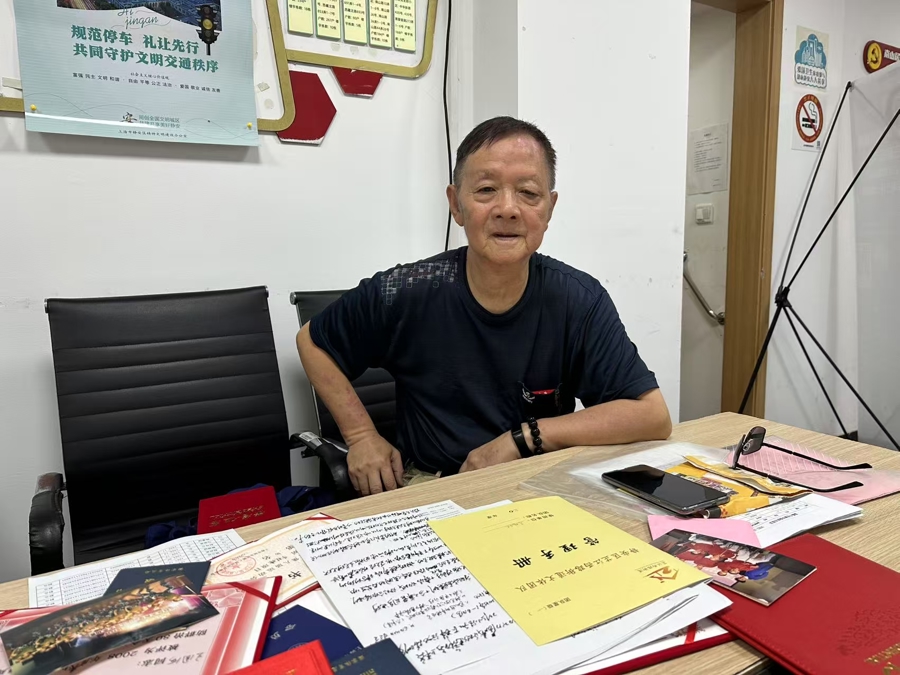 这支活跃了十多年的老年文艺队伍,藏着王国海大半生的热忱。年轻时的他怀揣美术梦,在单位宣传科任政工师,黑板报是他的“主场”。从排版到手写美术字,每一笔都透着认真,每当看到同事驻足阅读,他心里就美滋滋的。2005年,南山路居委会找上门来,正是看中他的专业精神,请他担任社区宣传员。退休后的日子,反倒比上班时更忙碌,既要当邻里间的“老娘舅”调解纠纷,又要在居委会辟出的小工作间里施展才华,常常忙到半夜才回家,却乐此不疲。